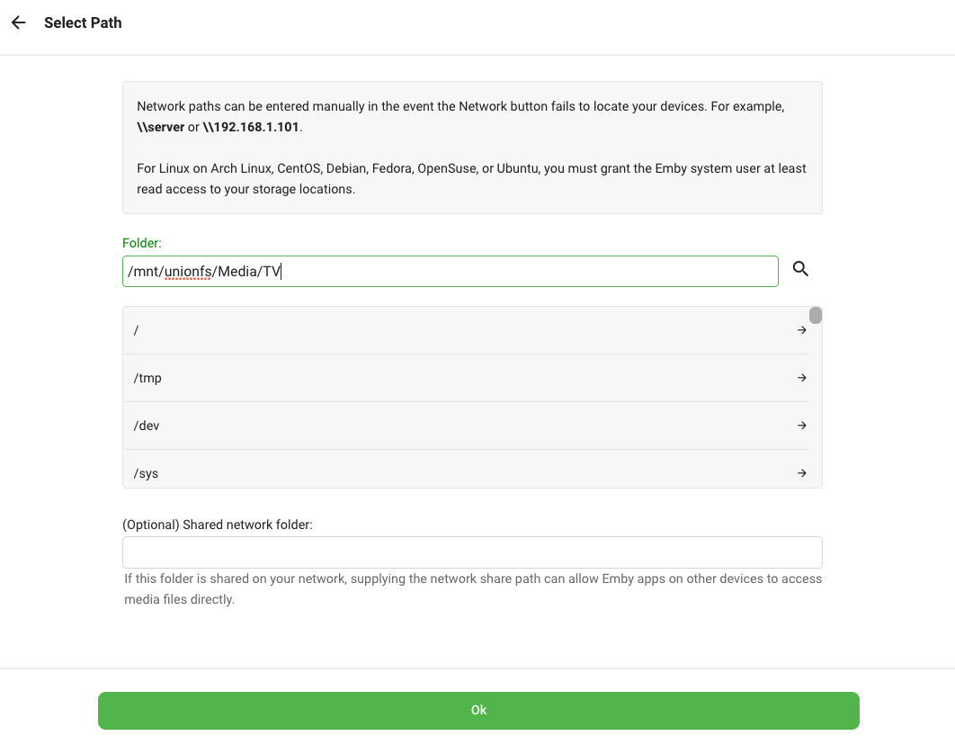 6. Type in or choose /mnt/unionfs/Media/TV. Click OK.