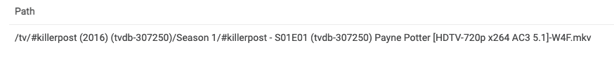 "Please scan this folder: /tv/#killerpost (2016)/Season 1/; it's in library something-or-other."
